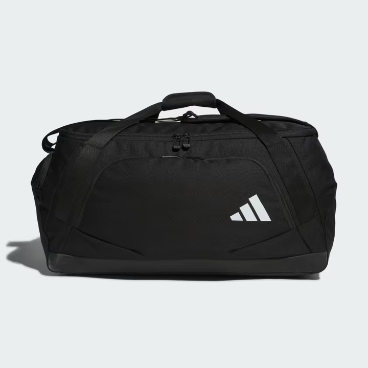 You'll be ready for away games with this durable duffel from adidas. Pack it all in, thanks to a spacious interior and wide-opening front panel that provides easy access to your gear. Separate compartments keep shoes, dirty clothes and smaller items organised so you can focus on your training. Grab it by the padded handles or adjustable shoulder strap and go.