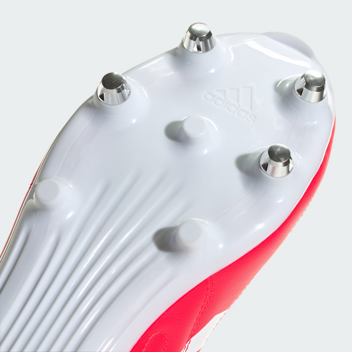 Rapid in every direction. As the game gets faster, players need to respond in a heartbeat. Built for soft ground, these adidas RS15 rugby boots keep things lightweight with a synthetic forefoot. Foam in the heel and padding on the collar line work together to cushion you through sudden bursts of speed. The off-centre lacing leaves a wide sweet spot on the forefoot for accurate, rugby-specific kicking.