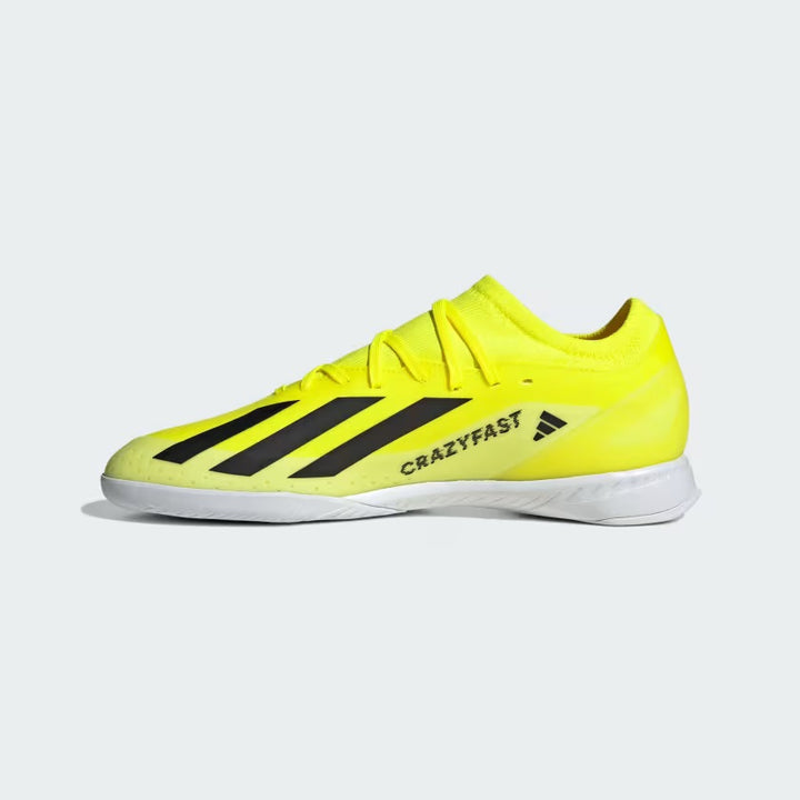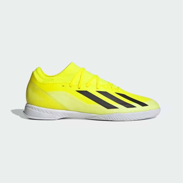Nothing beats the rush of pure speed. Change the game in an instant and leave defenders trailing with lightweight adidas X Crazyfast. Keeping you stable at full tilt on flat surfaces, these football boots sit on a grippy rubber indoor outsole and a soft EVA midsole. Featuring extra layers only where reinforcement is required, their coated textile upper comes with a flat-knit collar for solid lockdown.