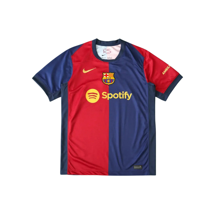 Celebrate 125 years of FC Barcelona with a jersey that takes us back to when it all started. Inspired by the club's first kit, a half-and-half split of Barça’s iconic colors returns with gold accents to honor the occasion. Other elements, like a hidden mark and a unique neckline, pay tribute to this special anniversary.