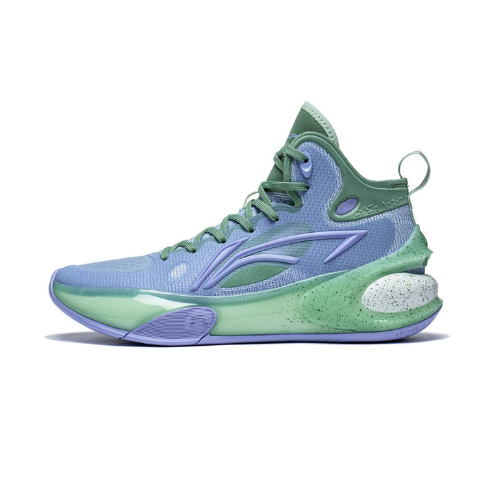 Elevate your game with the Li‑Ning Yushuai 17 High 'Black Grey' basketball shoes. Designed for ultimate control and responsiveness, these high-top kicks feature a durable and breathable mesh upper, a full-length BOOM midsole for superior cushioning, and a unique herringbone outsole pattern for exceptional traction on any court. The sleek black and grey colorway adds a touch of style to your on-court dominance. Experience the ultimate fusion of performance and aesthetics with the Li‑Ning Yushuai 17 High 'Purple Green'.