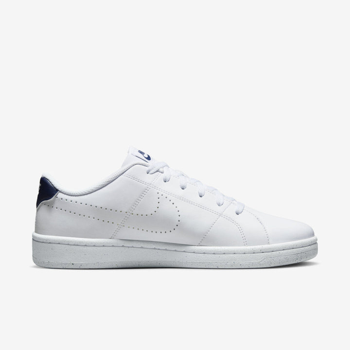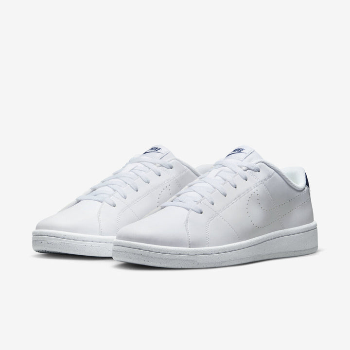 A flash from the past meets modern times. The NikeCourt Royale 2 Next Nature is made from at least 20% recycled content by weight. We intentionally replaced high-impact leather with synthetic leather for a crisp look that's smooth and is easy to wear. The large, retro Swoosh adds throwback appeal.