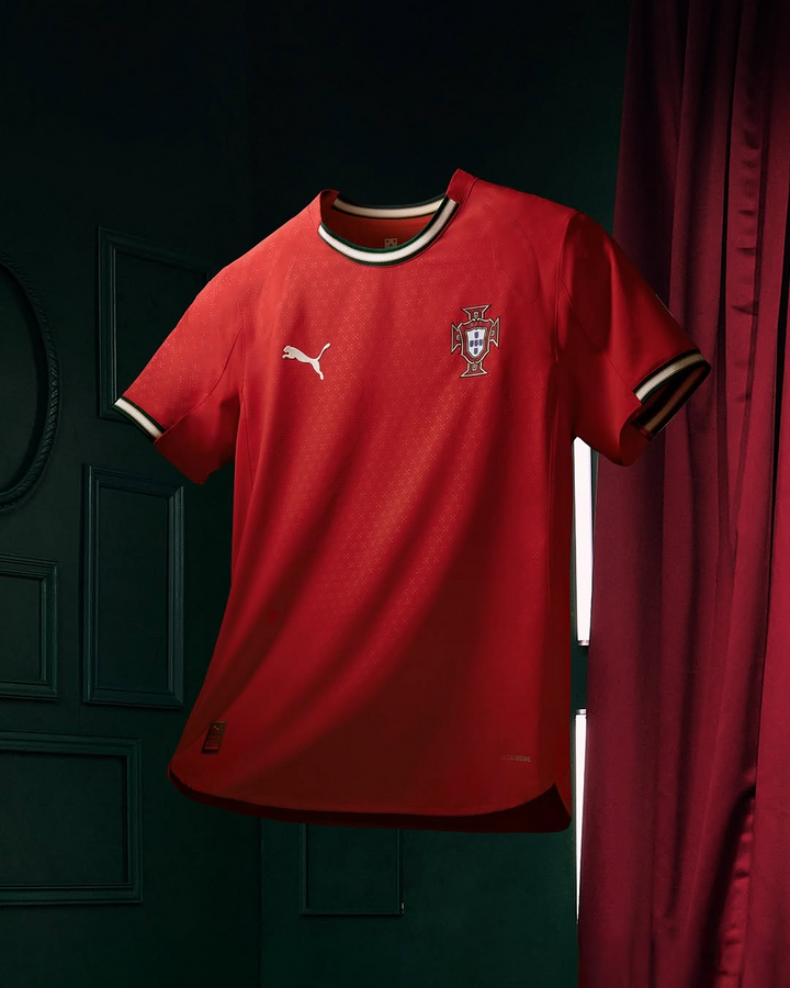 Tradition fuels ambition in PUMA's first Portugal home kit. With the colors of Portugal and graphics inspired by the Quinas of the national coat of arms, it's a kit that pays tribute to the brilliant past of the national team, while setting the stage for the next generation to shine even brighter.