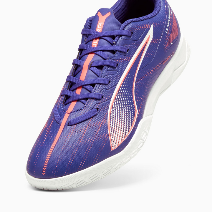 How fast is ULTRA? Fasten your seatbelt. These boots feature a lightweight support frame which adds stability to the upper, while the low-profile non-marking rubber indoor outsole makes this football shoe suitable for indoor use. Wherever you play, play at full throttle.